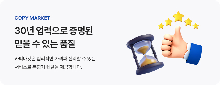 업무 환경에 따라 복합기 선택 기준은 크게 다릅니다. 인쇄량, 출력속도, 유지비용 등을 종합적으로 고려해야 합니다. 저희는 30년 이상 축적된 경험을 바탕으로 고객사의 업무 패턴과 예산에 최적화된 모델을 제안드리고 있습니다. 고객센터(☎ 1588-2318)로 연락주시면 무료로 맞춤 모델 추천을 드립니다.